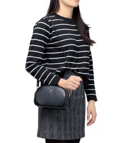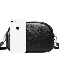 Jetsetter – Genuine Leather Crossbody Bag with Strap – Black – Jetsetter Silver