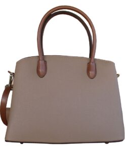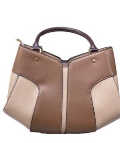 BAGCO – Women’s Structured Shoulder Bag – Taupe Two-Tone – Gold Chain Strap