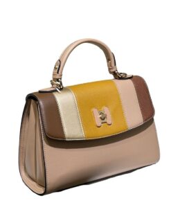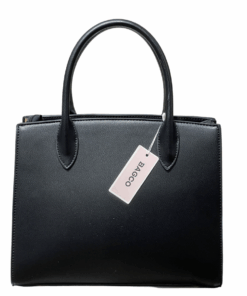 BAGCO – Women’s Black Textured Leather Bag with Tricolor Side Panels
