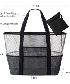 Large Multi-Use Lightweight Mesh Beach Organising Cary Bag Toy Tote Bag – Black