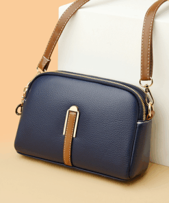 Leather Small Crossbody Bag for Women with Zipper Closure – Blue