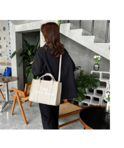 Letter Print Shoulder Strap Tote Bag – Stone Grey