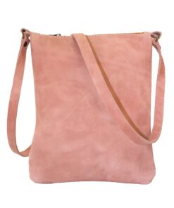Luvsa LS-BS2217 Full Grain Genuine Leather Women’s Sling Bag with Front Zip – Pink