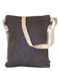Luvsa LS-TJ100 Genuine Leather and Corduroy African Print Sling/Satchel Bag – Grey