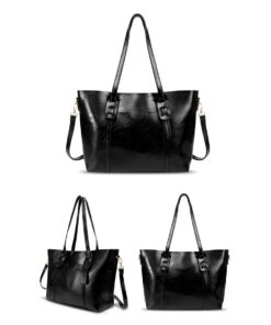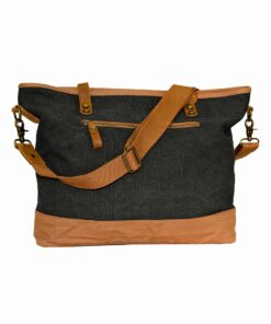 Luvsa SLU-522 Vintage Canvas & Genuine Leather Two-Tone Tote Bag – Black