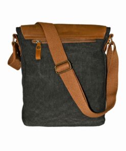 Luvsa SLU-534 Vintage Canvas & Genuine Leather Crossbody Sling Bag – Black