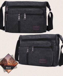 Men Canvas Shoulder Bags Multi Pocket Male Travel Messenger Handbag – Black