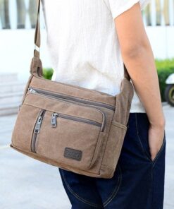 Men Canvas Shoulder Bags Multi Pocket Male Travel Messenger Handbag – coffee