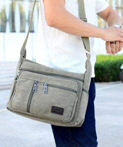 Men Canvas Shoulder Bags Multi Pocket Male Travel Messenger Handbag – Green