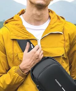Men’s Sling Bag Crossbody Chest Bag Anti-Theft Hiking Biking Casual Daypack – Black