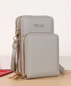 Mini Leather Crossbody Phone Sling Bag Shoulder Strap Wallet For Women – Grey