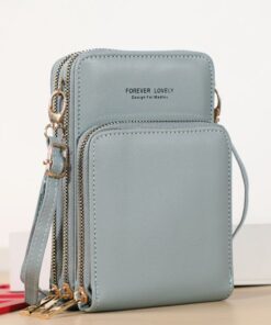 Mini Leather Crossbody Phone Sling Bag Shoulder Strap Wallet For Women – Light Blue