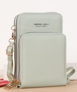 Mini Leather Crossbody Phone Sling Bag Shoulder Strap Wallet For Women – Light Green