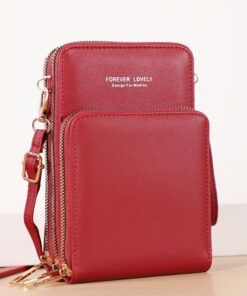 Mini Leather Crossbody Phone Sling Bag Shoulder Strap Wallet For Women – Red