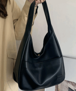 Minimalist Shoulder Tote Bag With Soft Handle – Black