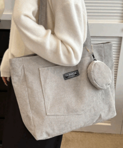 Minimalistic Corduroy Tote Bag With Attached Mini Round Purse – Grey