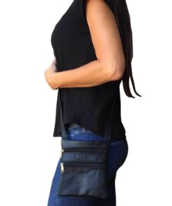MIRELLE Genuine Leather 2 Pocket Crossbody – Black