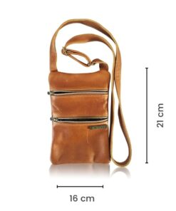 MIRELLE Genuine Leather – Ladies – Cellphone Crossbody Sling Handbag – Tan