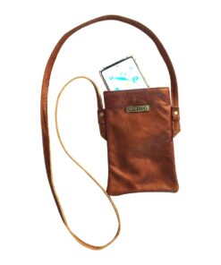 MIRELLE – Ladies Leather Cellphone Crossbody Sling Handbag – Pecan Brown