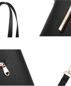NOUMIQIAY Luxury Women PU Leather Shoulder Crossbody Bag Handbags Set – Black