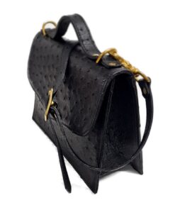 Ostrich Leather Clutch Sling Handbag – Black