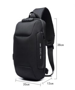Ozuko Anti Theft Lock Sling Bag Shoulder Crossbody Backpack With USB Port – Black