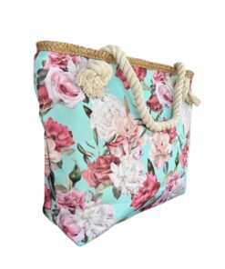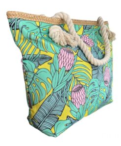 Printed Beach Bag – Cotton Road – Green, Pink