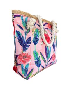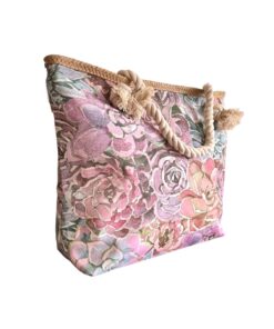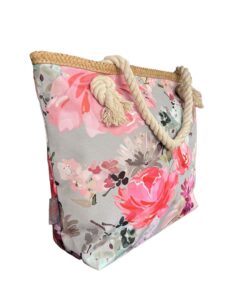 Printed Beach Bag – Cotton Road – Grey, Pink