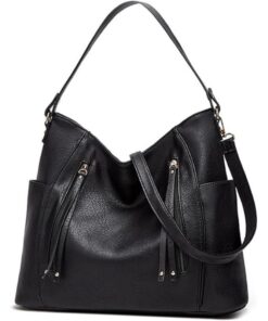 PU Leather Satchel Adjustable Crossbody Shoulder Tote Handbags – Black