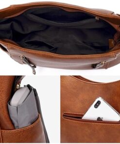 PU Leather Satchel Adjustable Crossbody Shoulder Tote Handbags – Brown