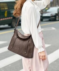 PU Leather Satchel Adjustable Crossbody Shoulder Tote Handbags – Grey