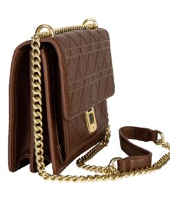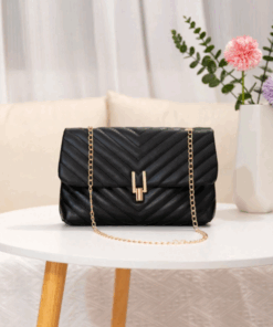 Quilted Crossbody Clutch Bag With Gold Chain – Black