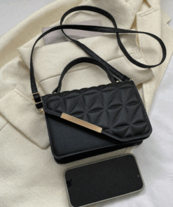 Quilted Faux Leather Crossbody Bag with Geometric Design – Black