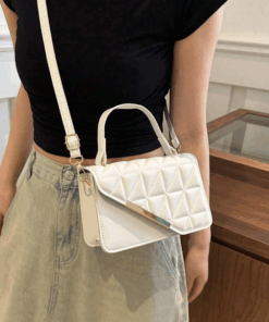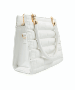 Quilted Faux Leather Crossbody Bag with Geometric Design – White