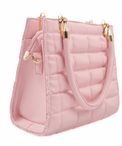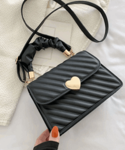 Quilted Handbag With Heart Lock And Scrunchie Handle – Black