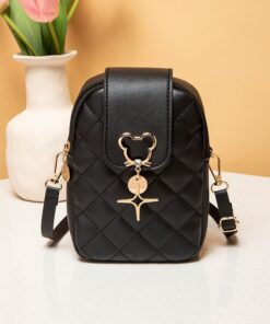 Quilted Mickey Cute Crossbody Sling Bag Double Compartment Phone Pouch – Black