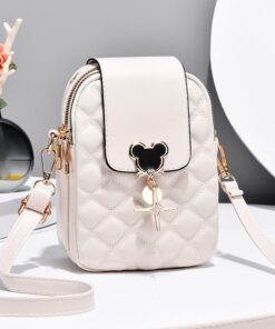 Quilted Mickey Cute Crossbody Sling Bag Double Compartment Phone Pouch – White