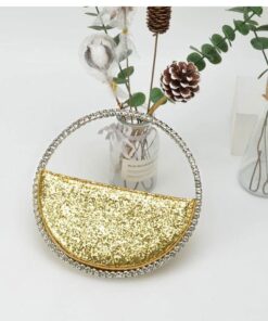 Rhinestone Circular Evening Bag – Gold