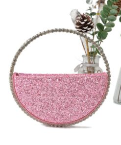 Rhinestone Circular Evening Bag – Pink