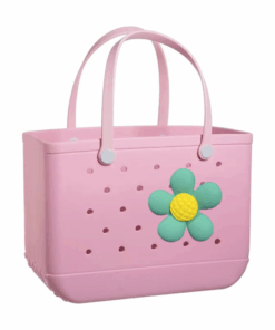 Small Ladies Beach Tote Waterproof Durable PVA Bag w/ Flower Charm – Pink
