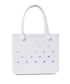 Small Ladies Beach Tote Waterproof Durable PVA Bag w/ Flower Charm – White