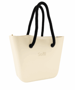 Sofii Designer Tote Handbag – Cream- Beige – Black Rope