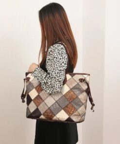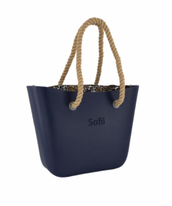 Sofii Designer Tote Handbag – Navy – Leopard – Beige Rope