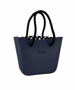 Sofii Designer Tote Handbag – Navy – Polka – Black Rope