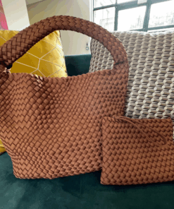 Stylin’ Woven Midi Neoprene Handbag – Burnt Orange