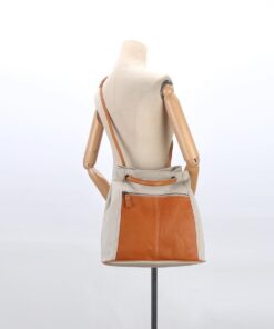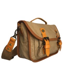 Vivace- 100% Leather and Canvas CrossBody Bag – Kahki