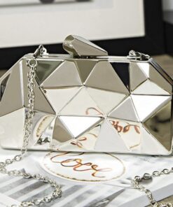 Women Geometric Pattern Metal Evening Clutch Bags – Silver