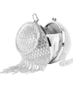 Women Round Ball Crystal Evening Clutch Wedding Party Purse – Silver