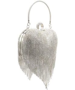 Women Silver Luxury Heart Shape Tassel Evening Clutch Bag