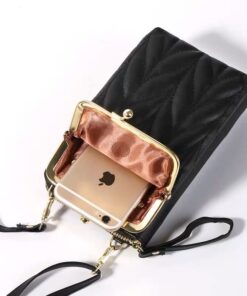 Women Sling Purse PU Leather Crossbody Phone Pouch with 2 Layer Zippers – Black
